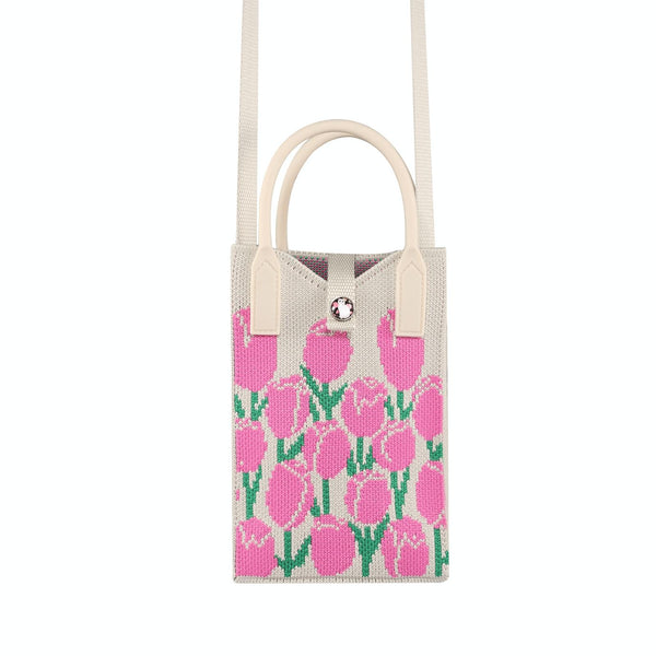 Floral Knitted Mini Crossbody Phone Bag(Pink)