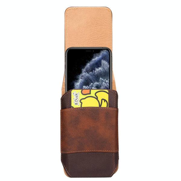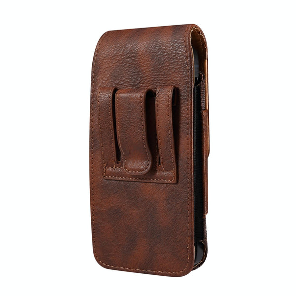 For 6.5 inch Mobile Phone Cowhide Texture Oxford Cloth Waist Bag(Brown)