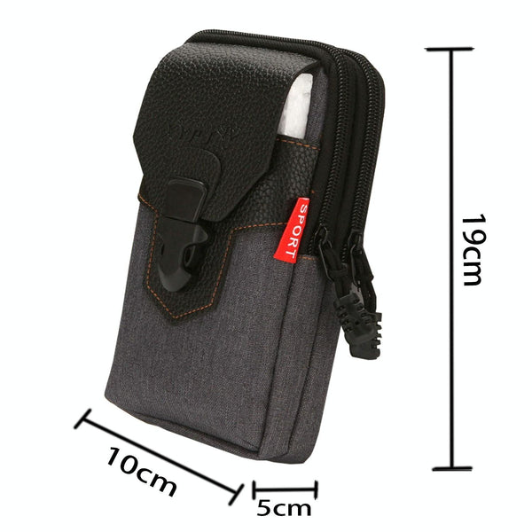 For 6-7 inch Mobile Phones Universal PU Leather + Fabric Stitching Waist Bag(Black)