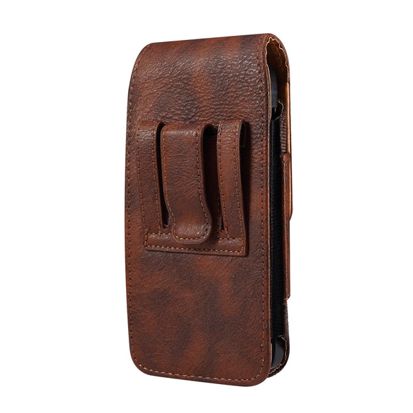 For 7.0 inch Mobile Phone Cowhide Texture Oxford Cloth Waist Bag(Brown)