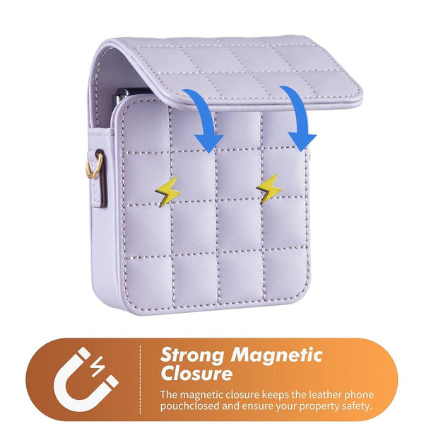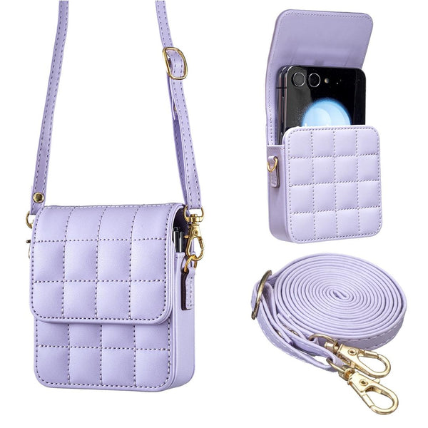 For Samsung Galaxy Z Flip6 BFB04 Plaid Crossbody Fold Phone Bag(Purple)