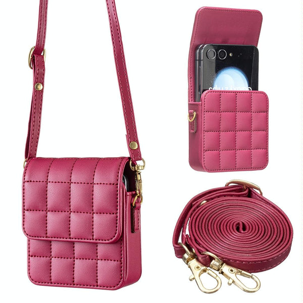 For Samsung Galaxy Z Flip6 BFB04 Plaid Crossbody Fold Phone Bag(Rose Red)