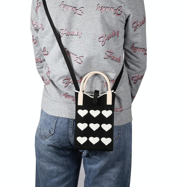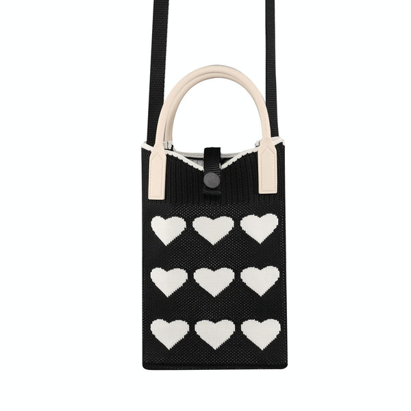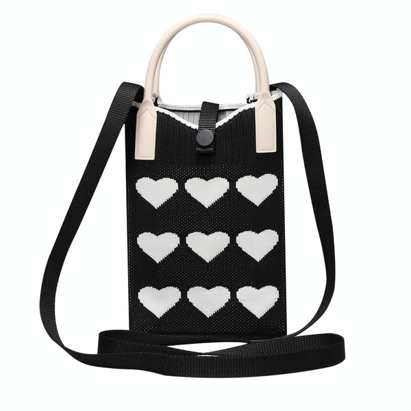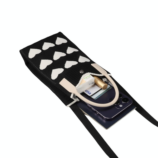 Heart Shaped Knitted Mini Crossbody Phone Bag For 6.9 inch and Below Phones(Black)