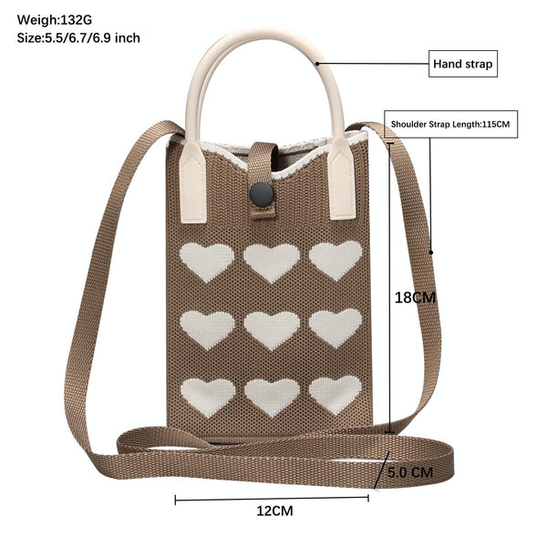 Heart Shaped Knitted Mini Crossbody Phone Bag For 6.9 inch and Below Phones(Brown)