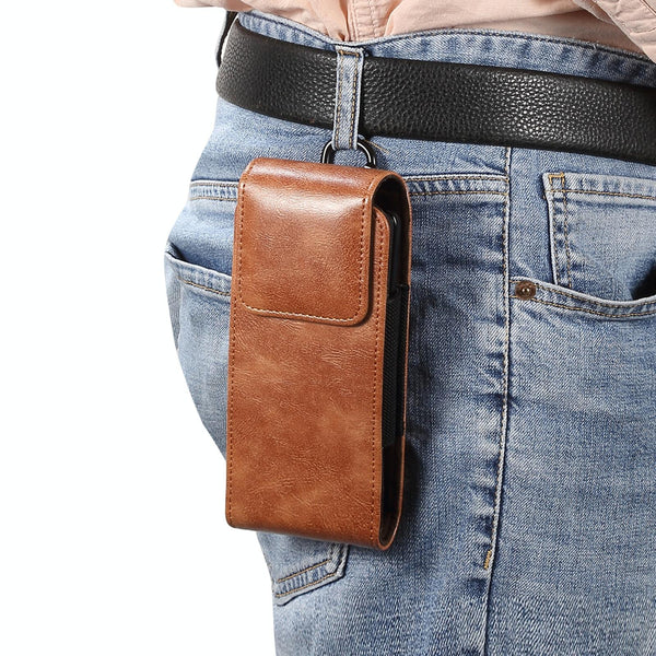 Lambskin Texture Leather Waist Bag for Folding Mobile Phone(Brown)