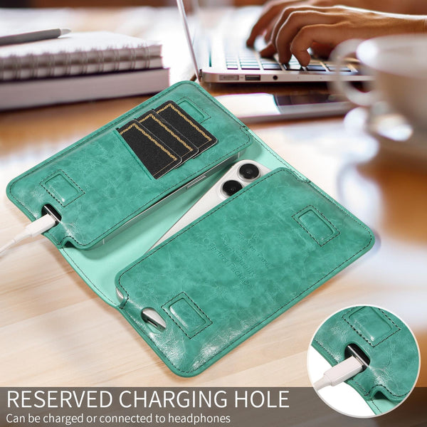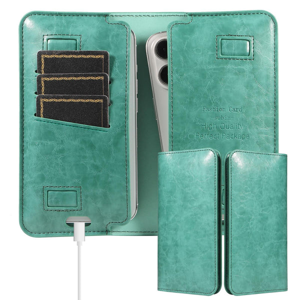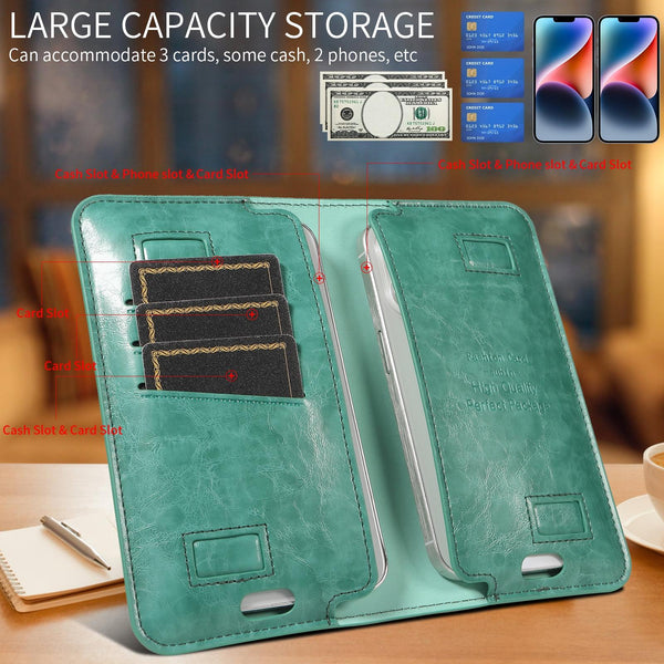 PU Flip Double Phone Card Slot Case, Size:15.7 x 9cm(Green)