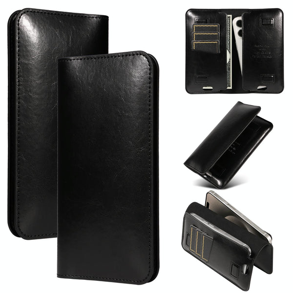 PU Flip Double Phone Card Slot Case, Size:19 x 11cm(Black)