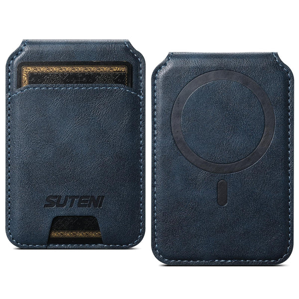 Suteni S2 Phone Magnetic Card Case Card Sleeve MagSafe Magnetic Coil PU Leather(Blue)