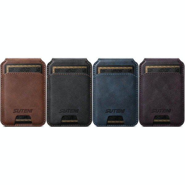 Suteni S2 Phone Magnetic Card Case Card Sleeve MagSafe Magnetic Coil PU Leather(Brown)