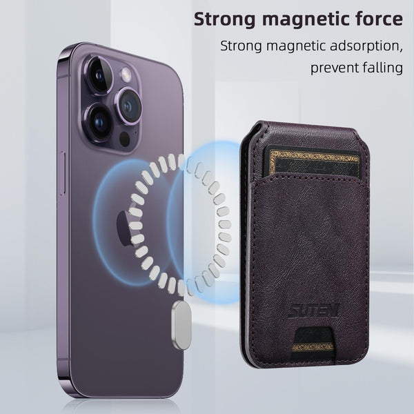 Suteni S2 Phone Magnetic Card Case Card Sleeve MagSafe Magnetic Coil PU Leather(Purple)