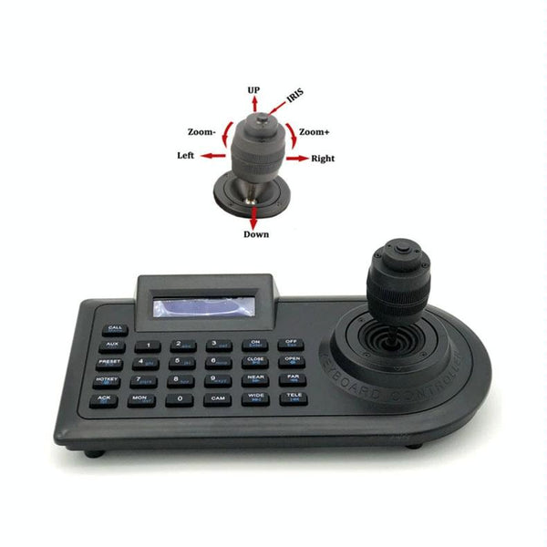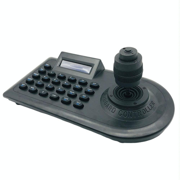 Take control of your CCTV system with this professional PTZ Controller Keyboard Joystick. Compatible with a wide range of CCTV camera domes via RS485 connection, including high-speed and low-speed domes. Control pan, tilt, and zoom functions with the intuitive 3-axis or 4-axis joystick, and easily manage presets and lens settings. Supporting Pelco-D, Pelco-P, Samsung, AD, and Panasonic protocols, this controller offers versatile compatibility. The clear LCD display provides at-a-glance status updates, while the robust design ensures reliable performance. Features a 1500m communication range (with 0.5mm twisted pair cable) and a 9600bps baud rate. Powered by 12V DC.