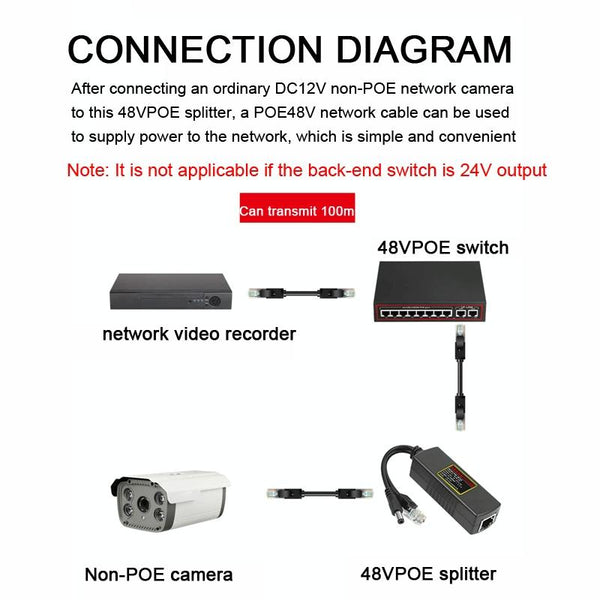 Power your 12V IP CCTV cameras effortlessly with this waterproof 48V to 12V PoE Splitter. Supporting the IEEE802.3af (PoE) standard, this splitter delivers a stable 12V DC output from a 44-57V PoE input, simplifying installation and reducing cabling. Ideal for a range of applications including IP cameras, access control systems, and wireless access points, this splitter offers over-current, overload, and short-circuit protection for enhanced safety and reliability. The built-in LED indicator allows for quick diagnostics, while the waterproof design ensures optimal performance in outdoor environments. Compatible with multi-brand PoE NVRs, this splitter supports 10/100Mbps data transfer rates up to 100 metres. Benefit from a simple, plug-and-play solution with this efficient and robust PoE splitter.