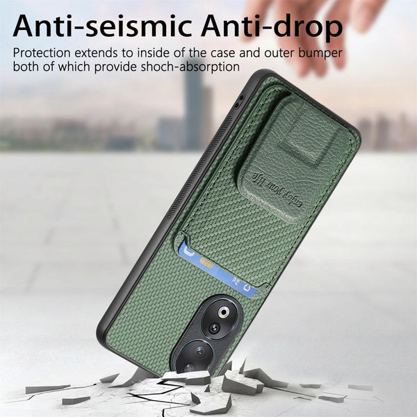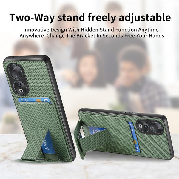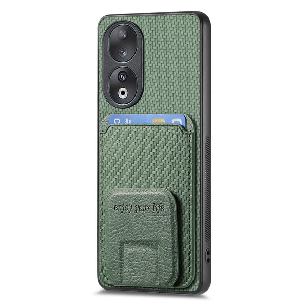 For Honor 90 Carbon Fiber Card Bag Fold Stand Phone Case(Green)