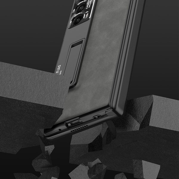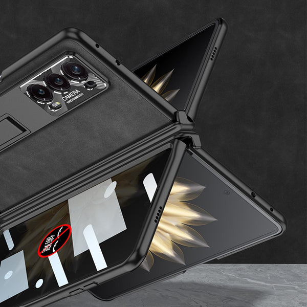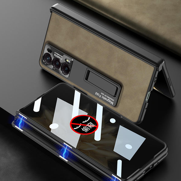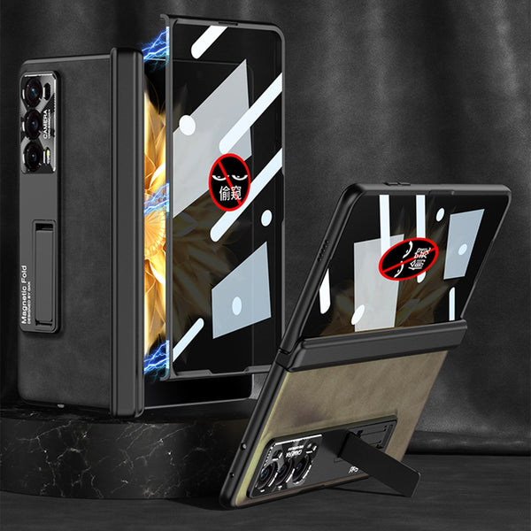 For Honor Magic V2 GKK Integrated Frosted Fold Hinge Privacy Leather Phone Case with Holder(Brown)