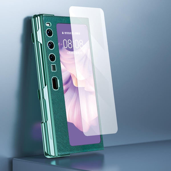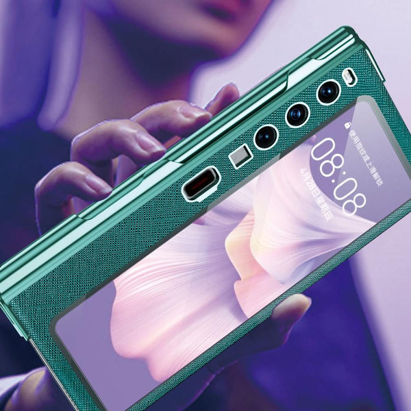For Huawei Mate Xs 2 integrated Cross Pattern Electroplating All-inclusive Phone Case with Stand(Green)