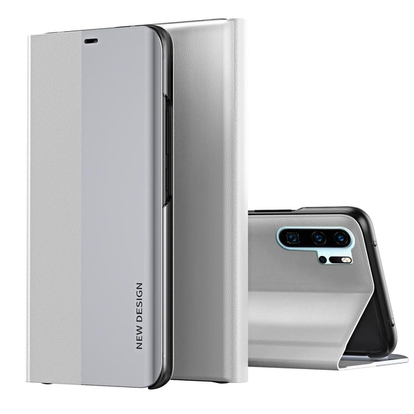 For Huawei P30 Pro Side Electroplated Dormant Ultra-Thin Horizontal Flip Leather Case with Holder(Silver)