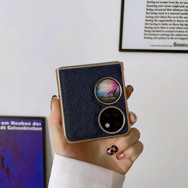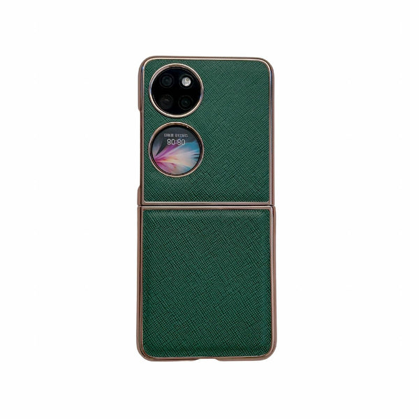 For Huawei P50 Pocket Nano Electroplating Cross Texture Genuine Leather Phone Case(Green)