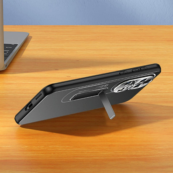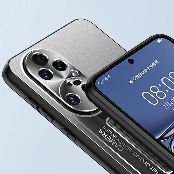 For Huawei P50 Pro Frosted Metal Hybrid TPU Holder Phone Case(Black)