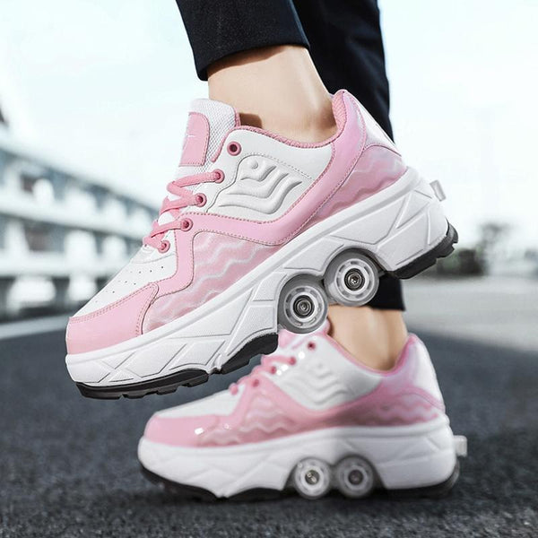 DF08 Dual-Purpose Walking Shoes Four-Wheel Shrinkable Brake Roller Skates, Size:34(White)