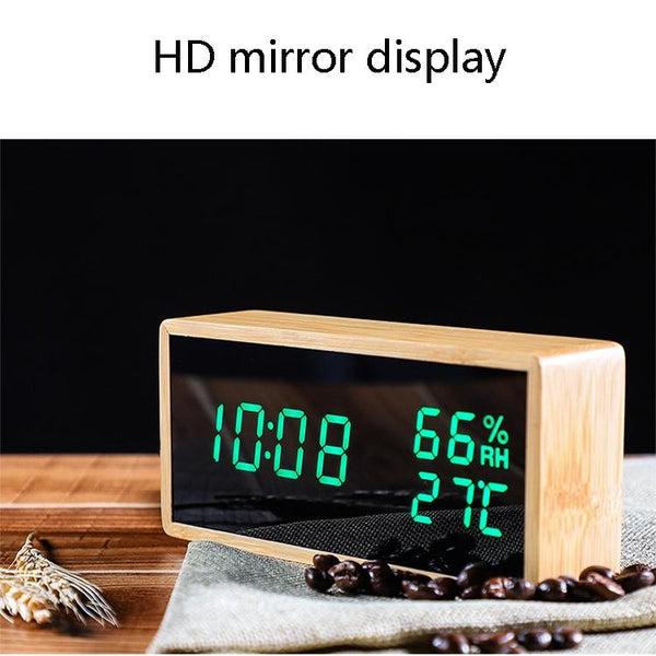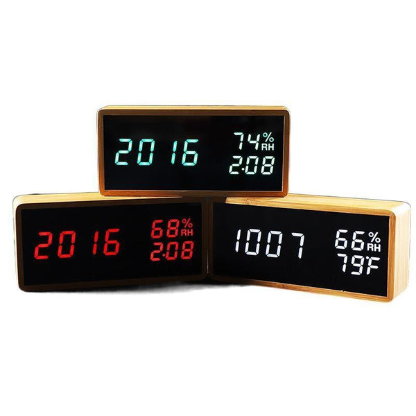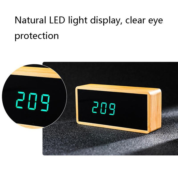 1502 Temperature And Humidity Electronic Clock Solid Wood LED Digital Control Alarm Clock, Colour: Green