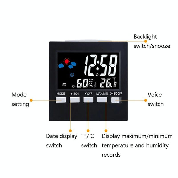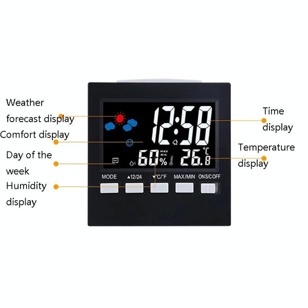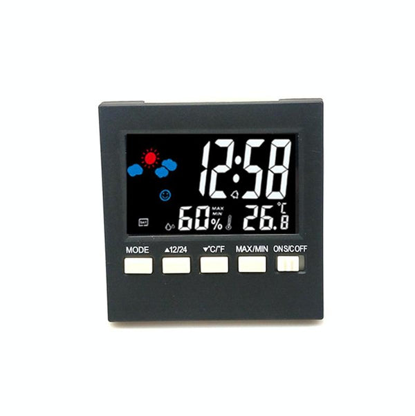 2159 Household Temperature And Humidity Display Alarm Clock Indoor Electronic Digital Display Multi-Function Color Screen Clock(Black)