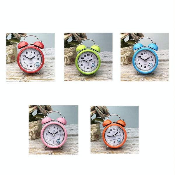 3 Inch Metal Bell Alarm Clock With Night Light Student Bedside Fashion Clock(Red)