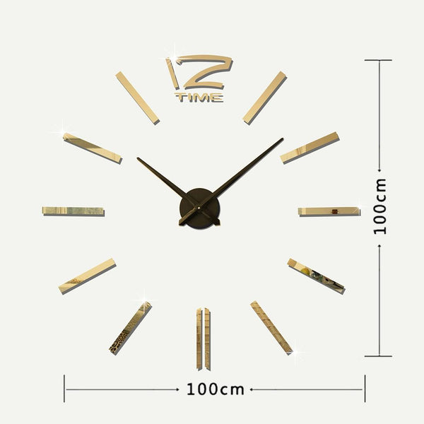 39 inch Bedroom Home Office Decoration Modern Frameless Large DIY 3D Mirror Wall Sticker Mute Clock(Gold)