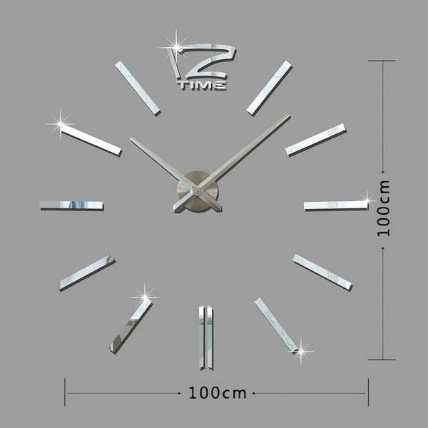 39 inch Bedroom Home Office Decoration Modern Frameless Large DIY 3D Mirror Wall Sticker Mute Clock(Silver)