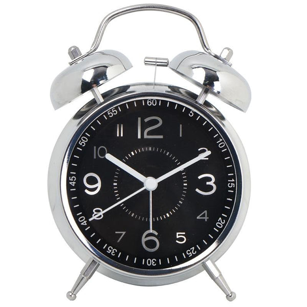 4.5 Inch Electroplated Metal Ring Bell Alarm Clock Quartz Clock With Night Light ?, Style: Black
