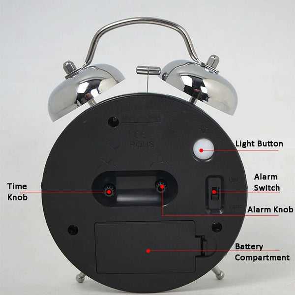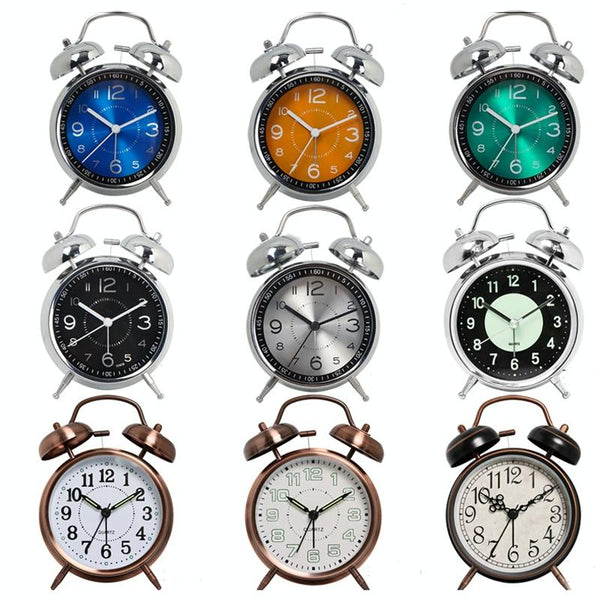 4.5 Inch Electroplated Metal Ring Bell Alarm Clock Quartz Clock With Night Light ?, Style: Black C
