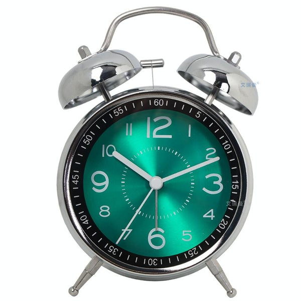 4.5 Inch Electroplated Metal Ring Bell Alarm Clock Quartz Clock With Night Light ?, Style: Green