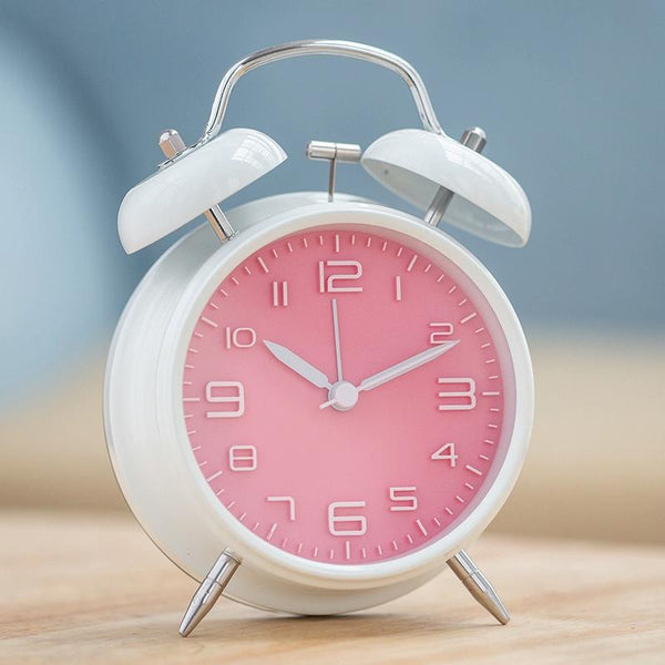 4 Inch Bedroom Bedside Stereo Digital Silent Alarm Clock With Light(White Shell Pink Surface)