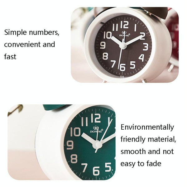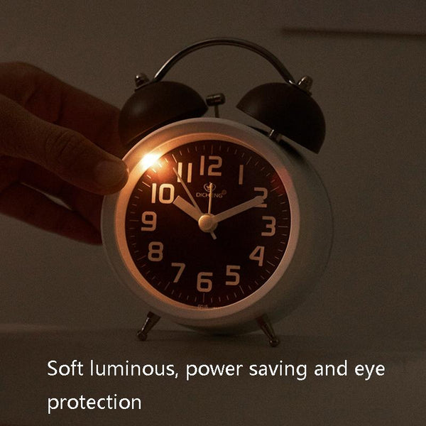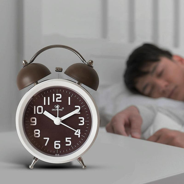 6016 Simple Bell Small Alarm Clock Students Learning Bedside Clock With Night Light(Coffee Color)