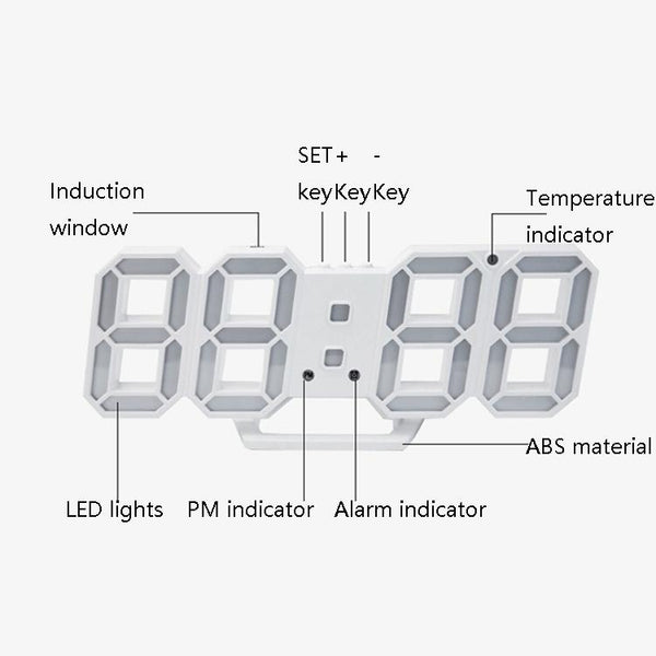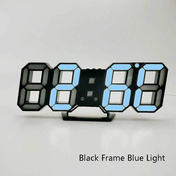6609 3D Stereo LED Alarm Clock Living Room 3D Wall Clock, Colour: Black Frame Blue Light