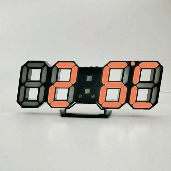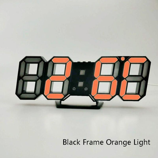 6609 3D Stereo LED Alarm Clock Living Room 3D Wall Clock, Colour: Black Frame Orange Light