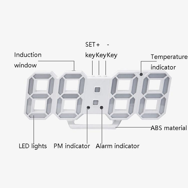 6609 3D Stereo LED Alarm Clock Living Room 3D Wall Clock, Colour: White