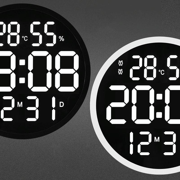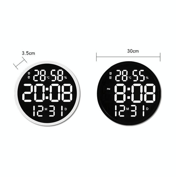 6620 12 Inch LED Simple Wall Clock Living Room Round Silent Digital Temperature And Humidity Electronic Clock(White Frame EU Plug)