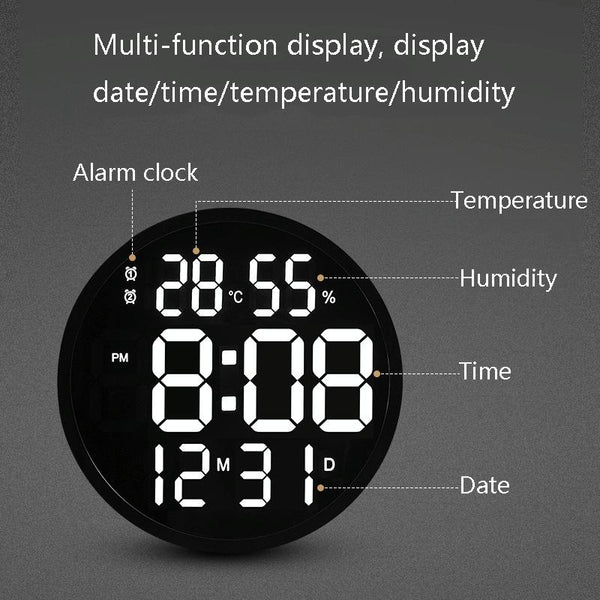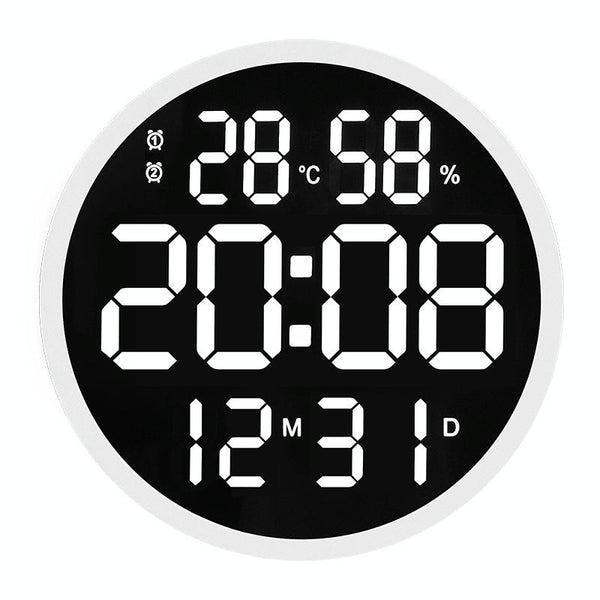 6620 12 Inch LED Simple Wall Clock Living Room Round Silent Digital Temperature And Humidity Electronic Clock(White Frame US Plug)