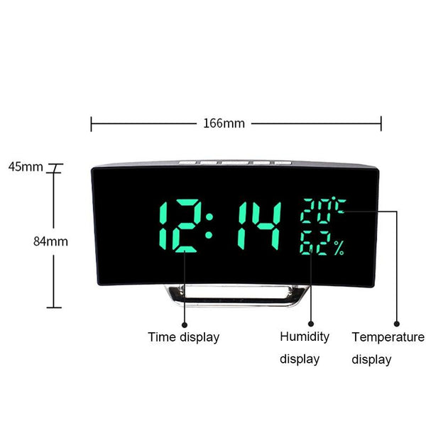 7816 Curved Screen LED Temperature / Humidity Display Multifunctional Clock(White)