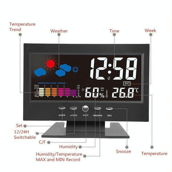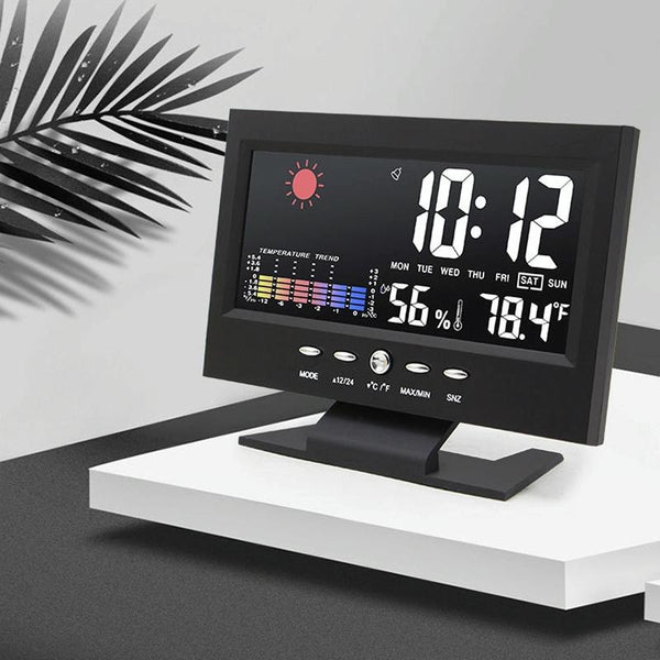 8082T Weather Forecast Clock LED Color Screen Perpetual Calendar Temperature And Humidity Intelligent Voice Control Electronic Alarm Cloc,Specification: Black + USB