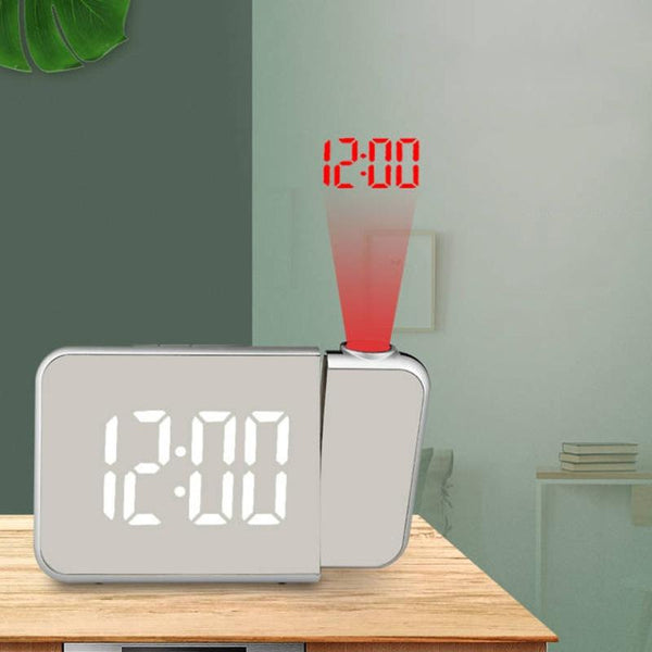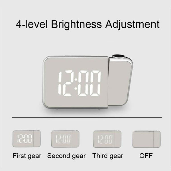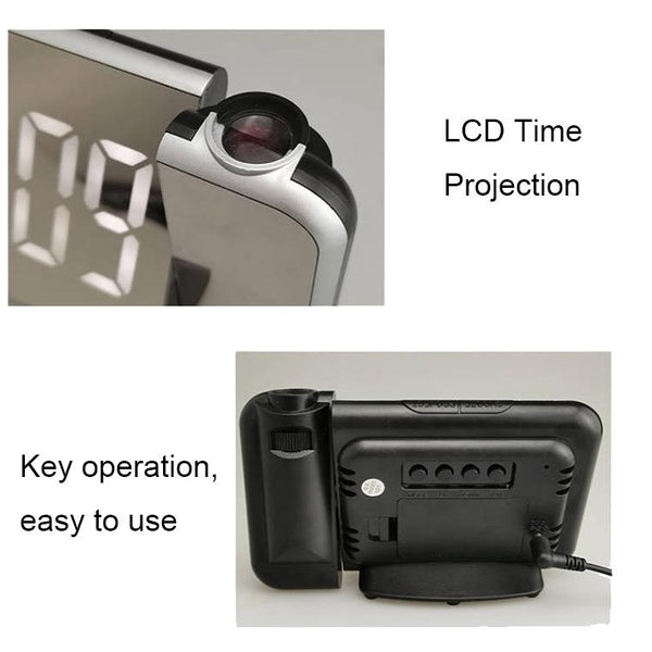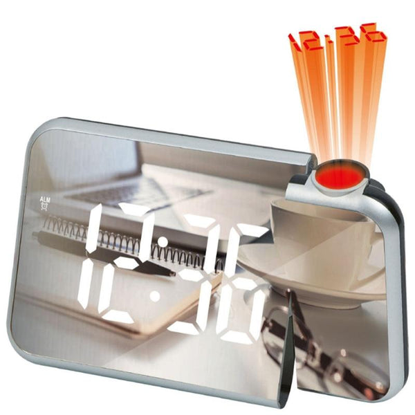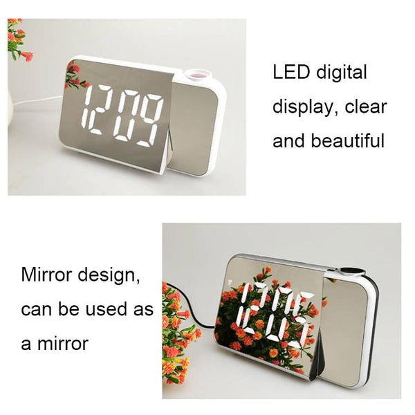 8590 LED Mirror Projection Automatic Semi-bright Electronic Clock(Black Shell+White Light)