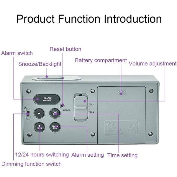 8890H Multifunctional Photosensitive Bedside Small Alarm Clock LCD Screen Digital Clock(Dark Green)