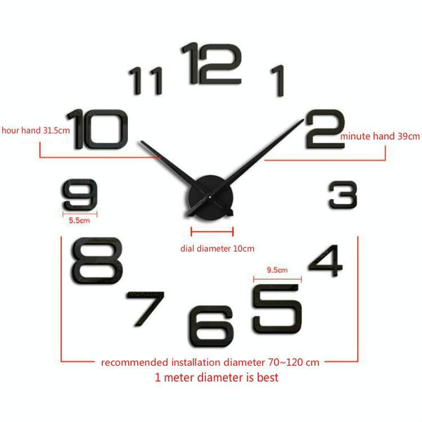 2. Dimensions: minute hand 39 cm, hour hand 31.5 cm, dial diameter 10 cm, recommended installation diameter 70~120 cm