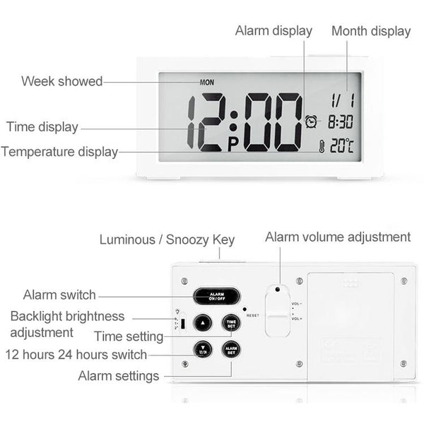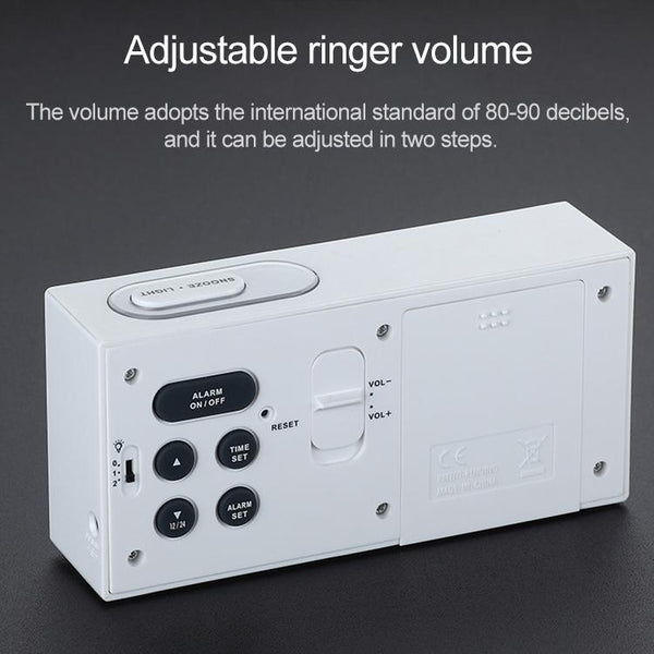 2. Adjustable sound size alarm clock, 4 minutes snooze function