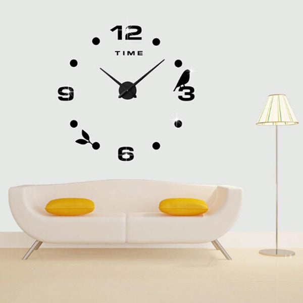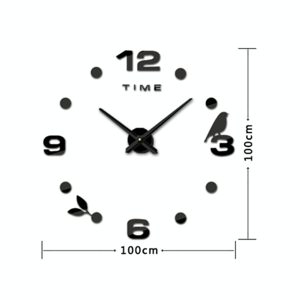 Bedroom Home Office Decoration Frameless Large Size DIY 3D Mirror Surface Wall Stickers Quiet Clock, Size: 100*100cm(Black)