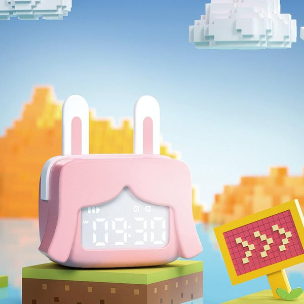 Cartoon Mini Smart Alarm Clock USB Rechargeable Children Bedside Fun With Sleeping Clock(Bunny Beauty Pink)