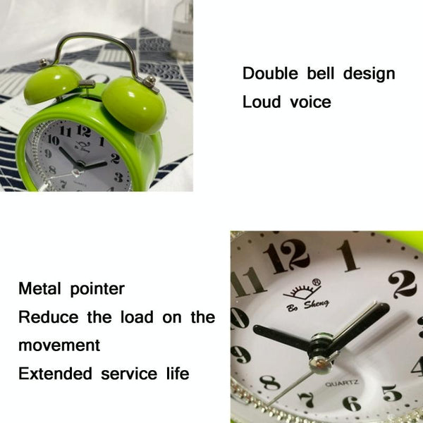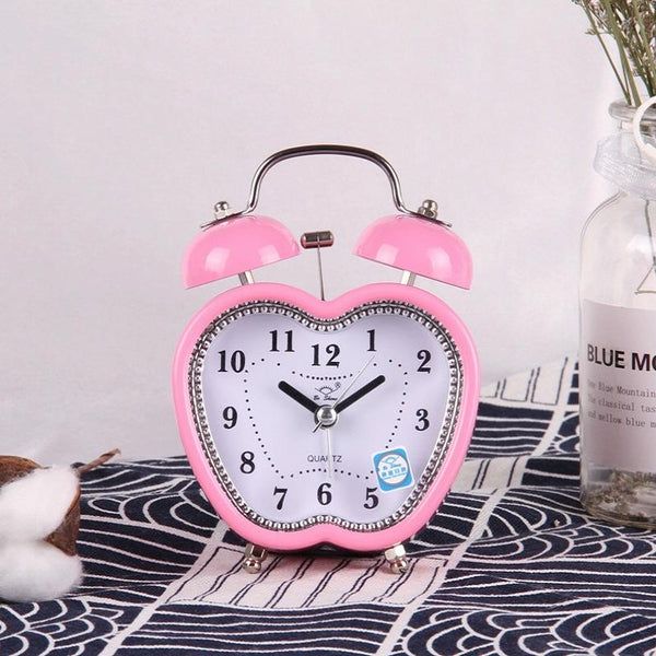 Children Cartoon Apple-Shaped Bedside Mute Desk Clock Metal Bell Digital Alarm Clock(Pink)
