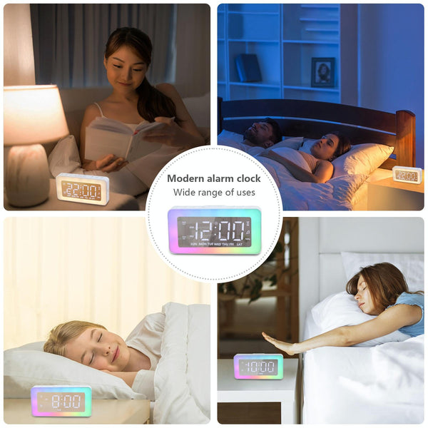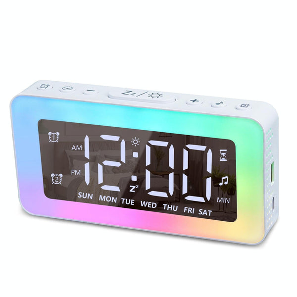 Color Changing LED Light Mirror Alarm Clock Built-in 8 Natural Music(White)