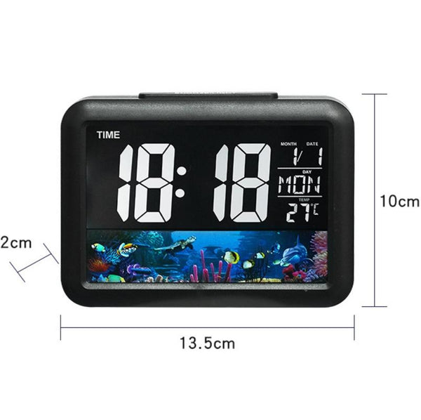 Color Screen Children Electronic Alarm Clock LCD Bedside Alarm Clock(Black Shell Turtle)