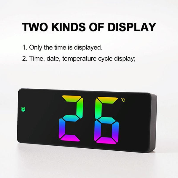 Colorful Fonts LED Electronic Alarm Clock Large Screen Clock(0725 Black Shell Black Surface D)